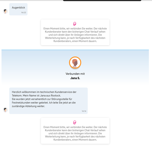 Router habe ich genug, also nehme ich natürlich einen eigenen und ahne dabei nichts böses. Nun sind bis zum Technikertermin nur noch ein paar Werktage und bislang habe ich kein Modem erhalten. Da gingen bei mir natürlich sofort alle Alarmglocken an und ich hab mich testweise mal an den Telekom Support gewandt. Nachdem ich mich mit deren dämlichen ChatBot rumgeschlagen habe, landete ich bei einem Support-Mitarbeiter, der mir folgendes mitteilte: