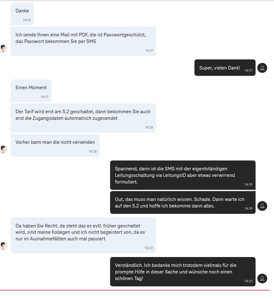 Ich bin ja froh, dass ich meinen 5G Anschluss noch nicht gekündigt habe, denn dieses stümperhafte Vorgehen der Telekom würde mich wahrscheinlich erstmal internetlos machen, wenn ich versuchen würde den Umstieg irgendwie zu timen.